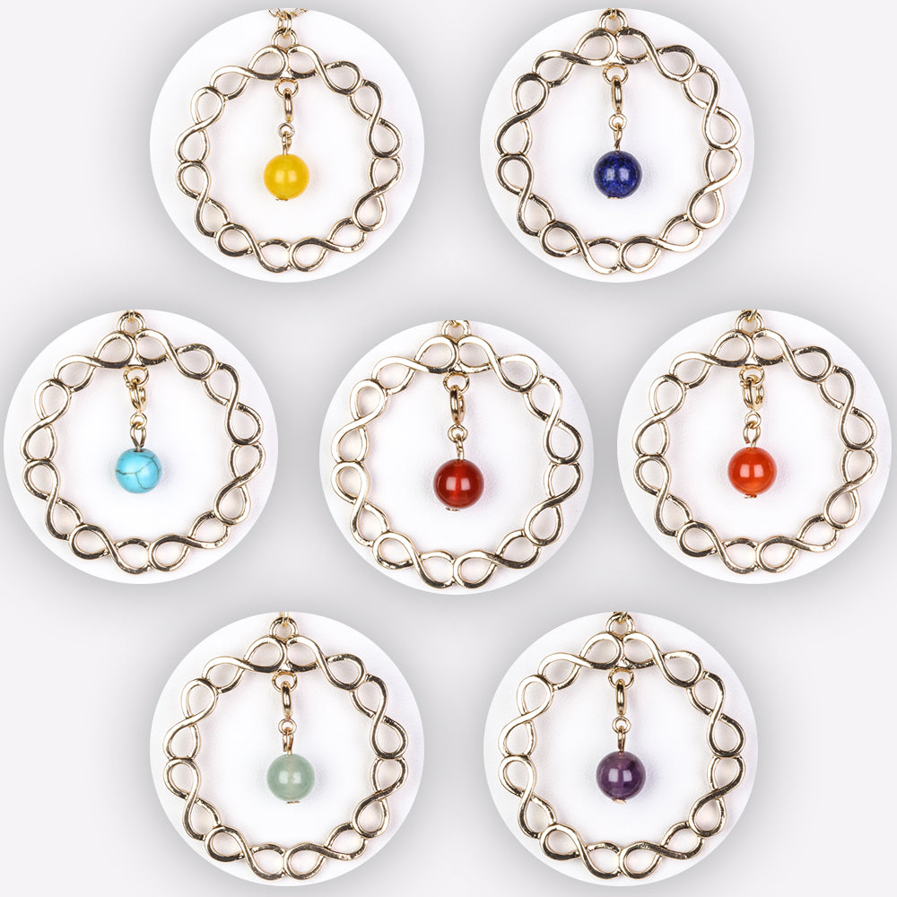 Este elegante colar dourado apresenta 7 pendentes intercambiáveis, cada um com sete pedras semi-preciosas diferentes. As pedras não são apenas bonitas, mas também podem ter efeitos benéficos, pelo que pode usar sempre a pedra que lhe dá mais apoio nesse momento. Quer se trate de alívio do stress, desenvolvimento espiritual, desenvolvimento da criatividade ou estabilização emocional, encontrará certamente a pedra certa para si.
