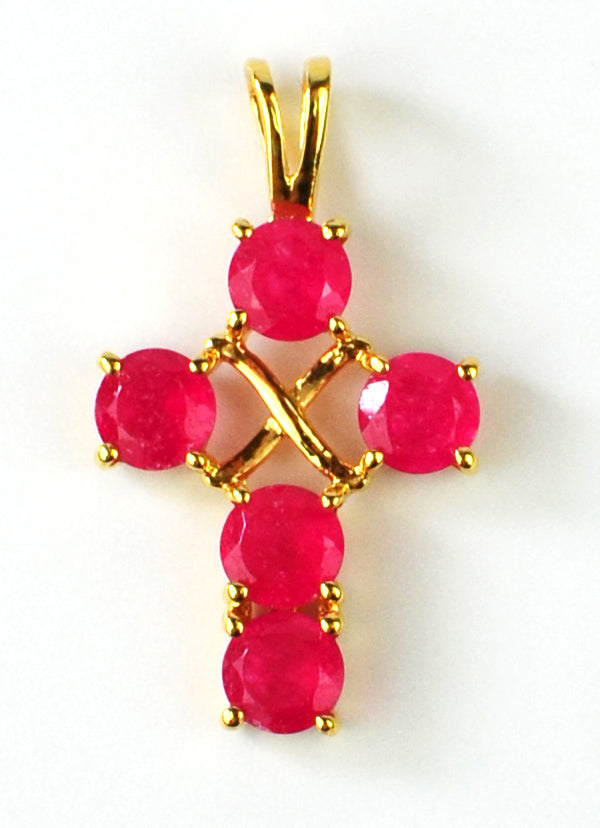 Cruz do Rei Midas, pendente em prata dourada com ágata vermelha