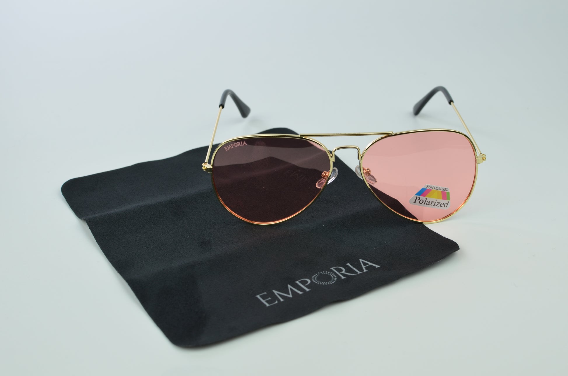 Emporia Itália - Série Aviator "DOCE", óculos de sol com filtro UV polarizados com estojo rígido e pano de limpeza, lentes de proteção solar de cor-de-rosa, armação dourada