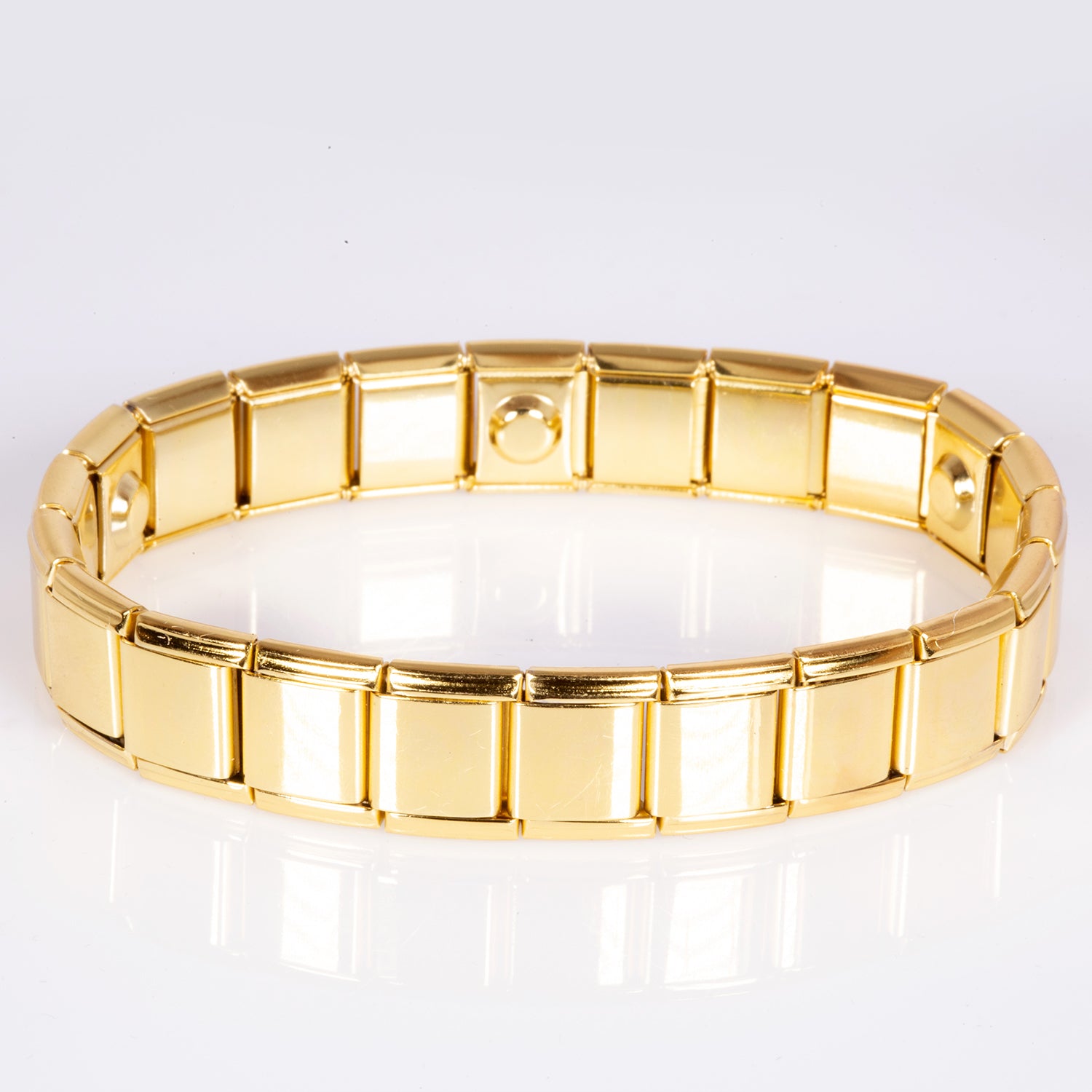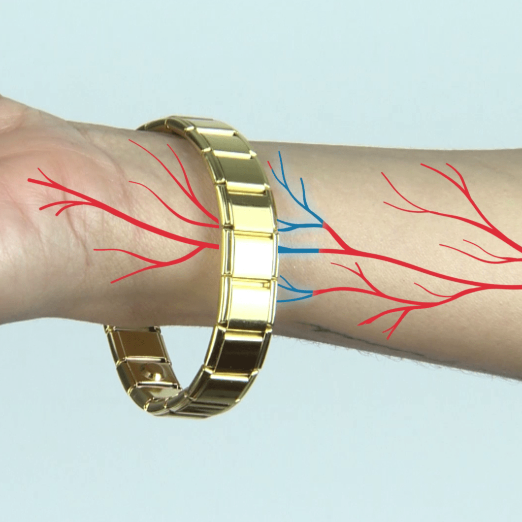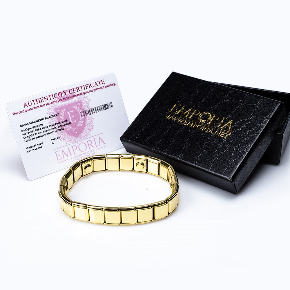 A pulseira magnética Davis Original contém 6 ímanes distribuídos uniformemente, cada um com uma força de 800 GAUSS, o que significa um total de 4800 GAUSS.