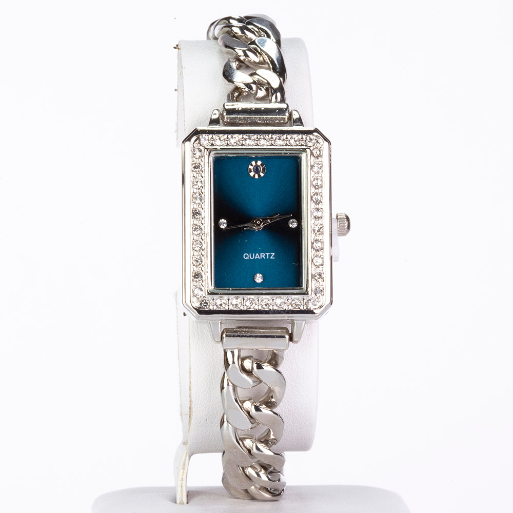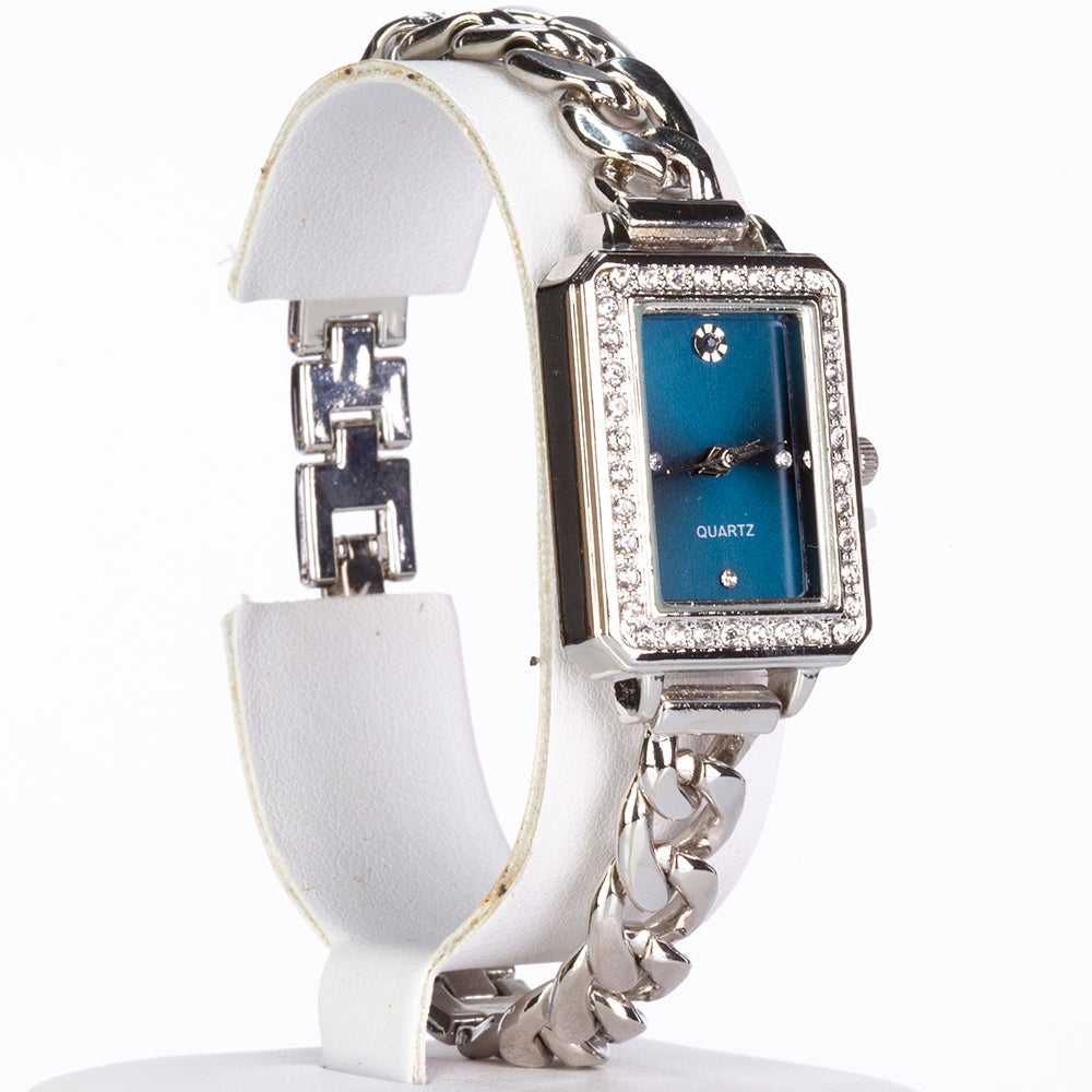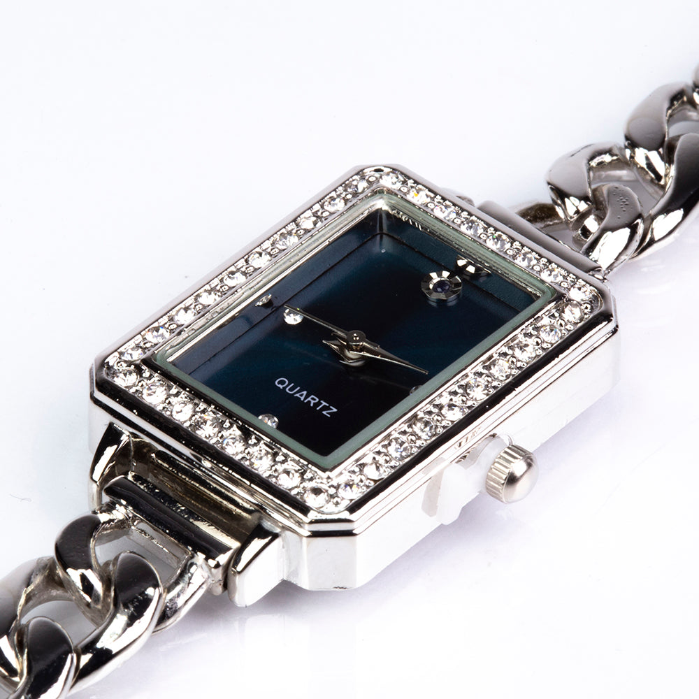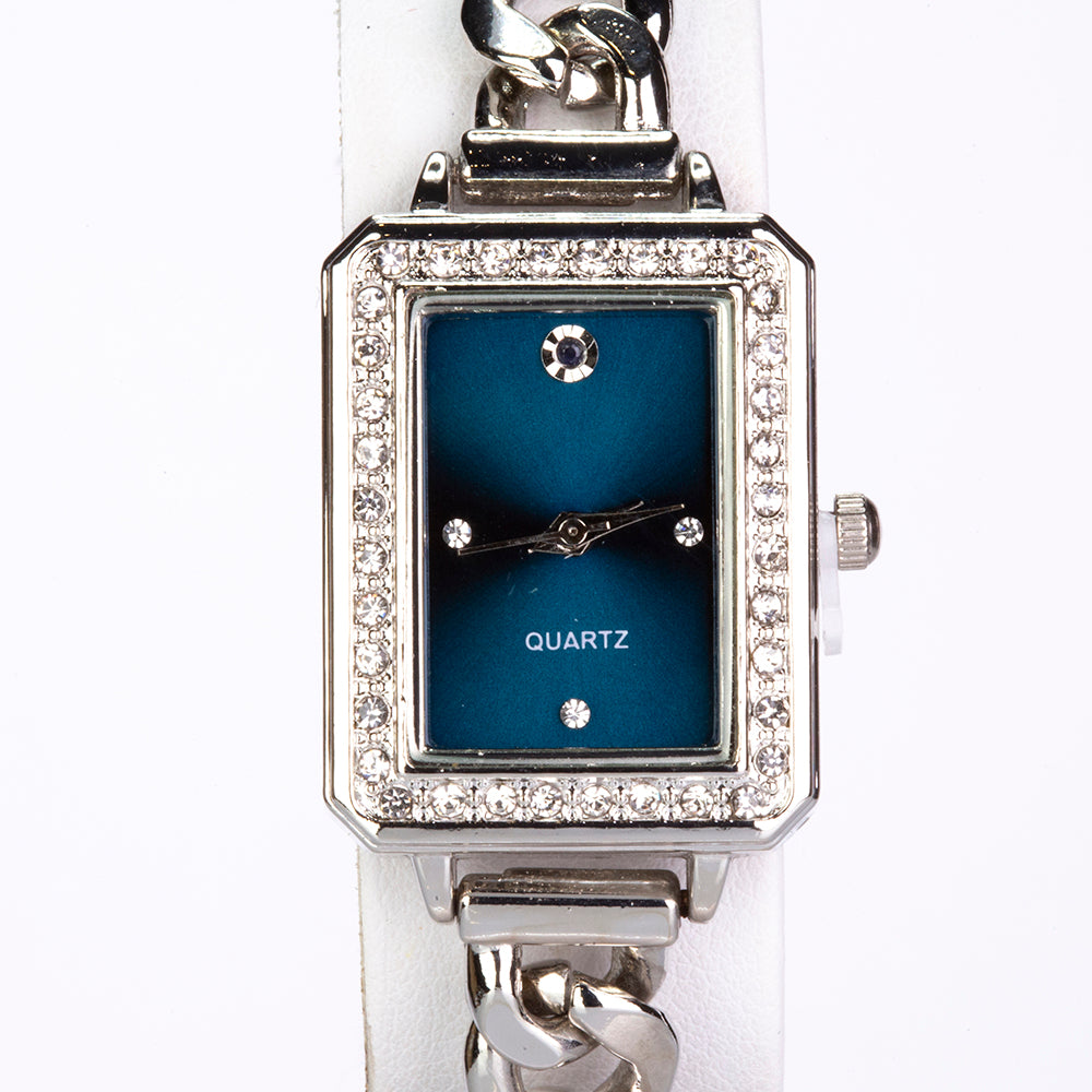 Conheça o nosso mais recente produto, que é um belo relógio de pulso decorado com uma pedra preciosa de safira, feito de uma liga de ouro branco e com uma parte traseira de aço. Na parte superior do mostrador do relógio encontra-se uma bonita pedra preciosa de safira. E o mais importante é que o relógio está decorado com um total de 34 cristais maravilhosamente transparentes e altamente polidos, que brilham ainda mais lindamente do que o sol! Quer o compre para uso pessoal ou como presente, este relógio é uma decisão extremamente acertada, pois está na moda e traz uma nova cor ao seu quotidiano.