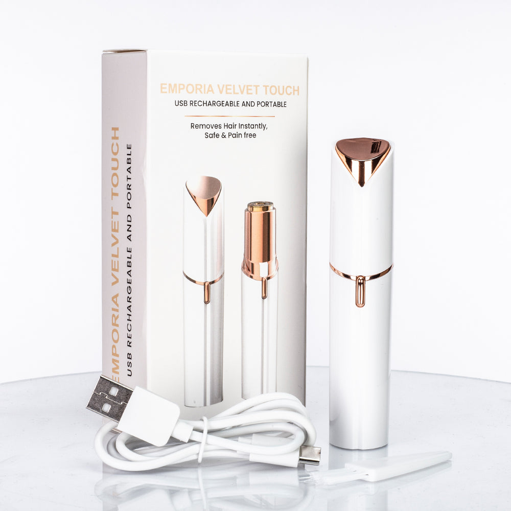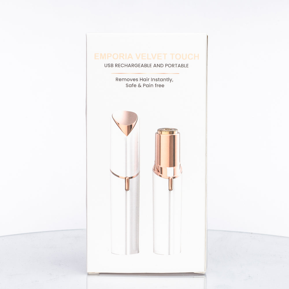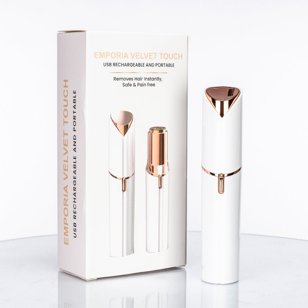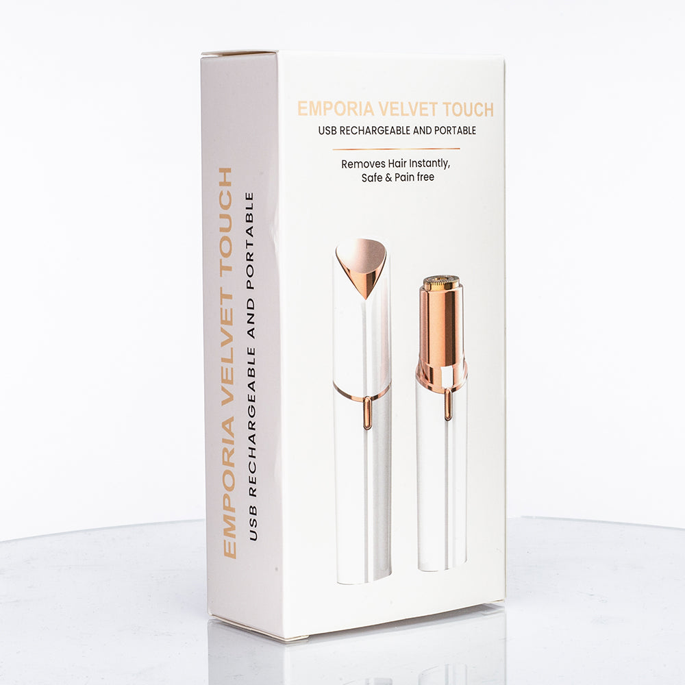 Emporia Velvet Touch é a solução elegante para remover facilmente e sem dor os pêlos indesejáveis do rosto e do corpo. O aparelho com a cabeça banhada a ouro é uma forma prática e eficaz de tornar a sua pele suave, em qualquer lugar e em qualquer altura.